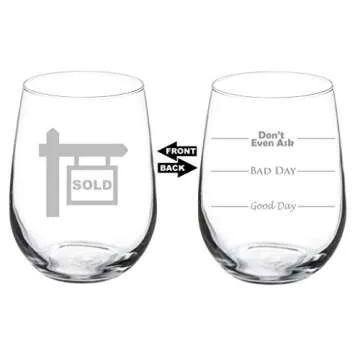 Show moreIntroducing the MIP Wine Glass Goblet, expertly crafted for the real estate professional who appreciates a touch of humor with their favorite beverage! This stylish stemless wine glass, featuring a 17 oz capacity, is designed to brighten up both your workspace and downtime with a cheeky message: "Good Day, Bad Day, Don't Even Ask." Perfect for the dedicated Realtor, Broker, or Real Estate Agent, this glass is not only functional but also a delightful conversation starter among colleagues and clients alike. Crafted from high-quality real glass, it combines durability with a sophisticated aesthetic, making it an ideal companion for both office celebrations and relaxing evenings at home.