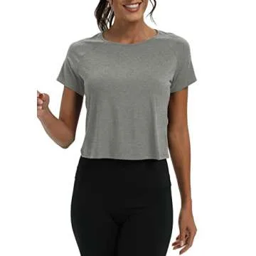Mippo Short Sleeve Athletic Tops Workout Shirts Exercise Clothes Gym Crop Tops for Women Loose Fit Light Heather Gray M