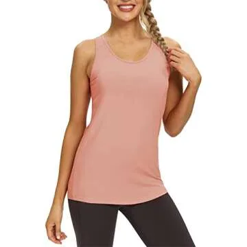 Show more Introducing the ultimate workout companion – this long workout tank top by MIPPO is designed for versatility and comfort. It features a loose and flowy fit that elegantly covers the lower stomach area while preventing any riding up during your active sessions. The unique racerback design delicately hugs your shoulders, allowing for maximum movement and breathability, ideal for yoga, running, or just a casual day out.