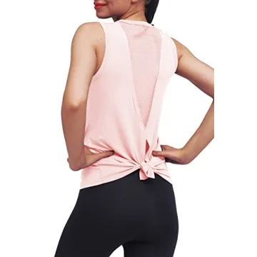Mippo Workout Tops for Women - Breathable Tie Back Tank Tops in Pink