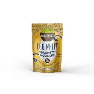 Miracle Noodle High Protein Egg White Noodles - Spaghetti – Low in Carbs & Calories – Ready to Eat – 3.5 Ounce (Pack of 6)