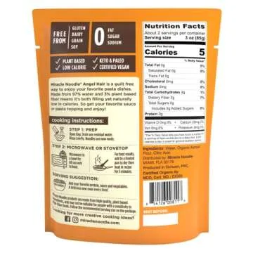 Show more Introducing Miracle Noodle Organic Ready To Eat Angel Hair Style Noodle – a revolutionary way to enjoy noodles without the added carbs or gluten. Crafted from the finest shirataki rice, these noodles are not only plant-based but also keto and paleo friendly, making them an ideal choice for health-conscious individuals. Each pack contains 7 ounces of delightful noodles that are ready to eat in an instant, ensuring you can enjoy your meals without spending hours in the kitchen.