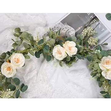 Miracliy 2 Pack 13FT Artificial Eucalyptus Garland with Champagne Roses Flower Vine Eucalyptus Greenery Garland for Weddings and Parties
