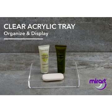 Introducing the Mirart Clear Acrylic Tray, a beautifully crafted accessory that elevates both home and store decor with its sleek, modern design. Measuring 8 inches square and 1 inch high, this tray is perfectly sized for a myriad of applications, whether you're serving snacks at a party, organizing cosmetics at your vanity, or displaying your favorite decor items. Its BPA-free composition ensures safety and longevity, making it a reliable choice for both indoor and outdoor...