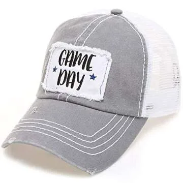 MIRMARU Women’s Baseball Caps Distressed Vintage Patch Washed Cotton Low Profile Embroidered Mesh Snapback Trucker Hat (as1, Alpha, one_Size, Gane Day, Grey)