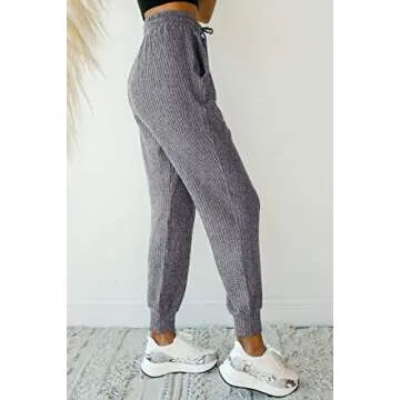 MIROL Women's Active Drawstring Joggers Pants Elastic Waist Waffle Knit Trousers Athletic Solid Color Sweatpants