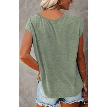 MIROL Women's Cap Sleeve Tank Tops U Neck Solid Color Casual Shirts Loose Fit Basic Blouse
