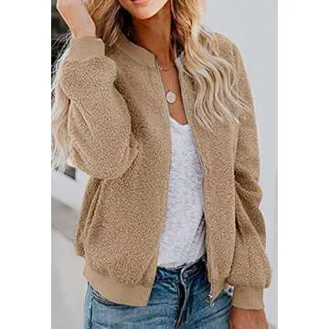 MIROL Women's Sherpa Fleece Jacket Faux Fuzzy Long Sleeve Casual Zip Up Bomber Coat