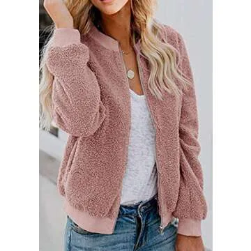 MIROL Women's Sherpa Fleece Jacket Faux Fuzzy Long Sleeve Casual Zip Up Bomber Coat