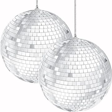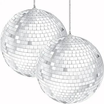 Show moreElevate the ambiance of any gathering or space with the sparkling charm of our 4-Inch Silver Mirror Disco Ball 2-Pack. Perfectly crafted for easy decoration, these disco balls come with an attached string for hassle-free installation, allowing you to transform your environment in mere moments. Hang them from your ceiling, walls, or any desired spot, and watch as they radiate light in delightful patterns, creating a magical effect that will mesmerize your guests. Each disco ball features small, shiny silver mirrored squares that reflect light beautifully, making them ideal for dance parties, weddings, birthdays, Christmas decorations, Halloween parties, or family gatherings. No setup expertise is required, just add your creativity!