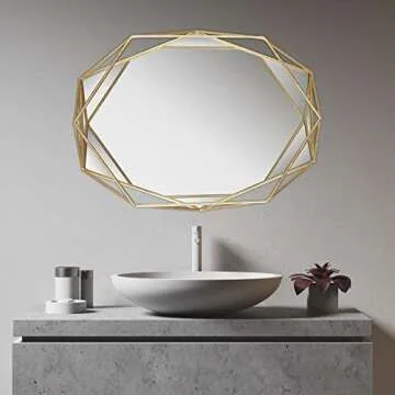 Mirrorize, 22x17 Framed Gold Hexagon Mirror, Geometric Hanging Modern Metal Frame Accent Wall Mirror for Bathroom Entryway Bedroom (IMP8449)