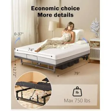 The adjustable bed frame features a quiet motor, ensuring minimal noise when adjusting positions, allowing for uninterrupted relaxation and sleep.