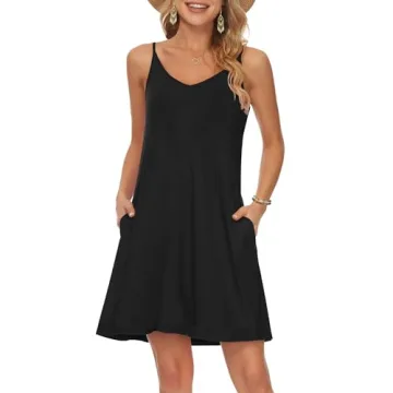 MISFAY Women's Summer Spaghetti Strap Casual Swing Dress with Pockets