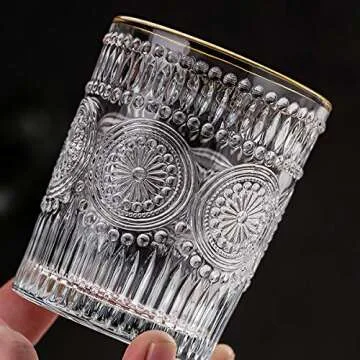 Show moreTransform your beverage moments into cherishing memories with the MISIMPO Drinking Glasses Set. This exquisite collection features four beautifully embossed vintage glasses that embody a perfect blend of elegance and practicality. Standing 4" tall and measuring 3" in diameter, each glass holds a delightful capacity of 9.5oz, making them ideal for savoring anything from fresh juices to smooth cocktails. These glasses bring more than just functional use; they offer a vintage charm that enhances your drinking experience and adds sophistication to any occasion.