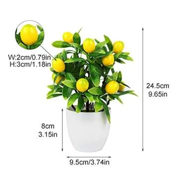 Show more Bring a touch of summer into your space with the MISNODE 2 PCS Artificial Mini Potted Lemon Tree. Each lifelike bonsai stands at just 9.6 inches, perfectly sized for adding a charming accent to any setting. Designed to mimic the essence of real lemon trees, these artificial plants offer the beauty of nature without the hassle of upkeep. Whether placed on a table, in the office, or as part of your home decor, these delightful mini lemon trees create a refreshing and inviting atmosphere.