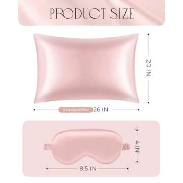 Miss Adola 1Pack Mulberry Silk Pillow Case for Hair and Skin Standard 26"x20" Silk Pillowcase with Eye Mask & Scrunchie Soft Silk Pillowcase Sleeping for Women, Wife, Female - Blush Pk