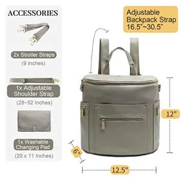 miss fong Diaper Bag Backpack - Stylish Large Leather Bag with Insulated Pockets and Changing Pad