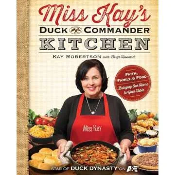 Show more Discover the heartwarming culinary legacy of Miss Kay from A&E's hit show Duck Dynasty with **Miss Kay's Duck Commander Kitchen: Faith, Family, and Food**. This delightful cookbook is more than just a collection of recipes; it’s an invitation into the Robertson family’s kitchen, where love, laughter, and a passion for genuine southern cooking come together. With **over 100 mouthwatering recipes**, this book encapsulates the essence of family gatherings and shared meals, showcasing the unique flavors and traditions that define the Robertson clan. Each dish tells a story, allowing you to experience the familial bonds that are as rich as the dishes themselves.