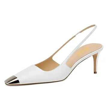 Show moreElevate your style and comfort with the Miss Left Women Stylish Slingback Square Toe Metal Cap Mid Kitten Heels. Designed for the modern woman, these stylish pumps feature a charming minimalistic design that combines elegance with practical functionality. The mid kitten heel height ranges from 2.3 to 3.1 inches (6-8 cm), depending on your selected size (4-16 M US), making them the perfect choice for all-day wear. The lovely square toe design is enhanced by a chic metal cap, adding a touch of sophistication to any outfit. With an elastic ankle backstrap, these heels ensure a secure fit and superior comfort, allowing you to step out with confidence on any occasion.