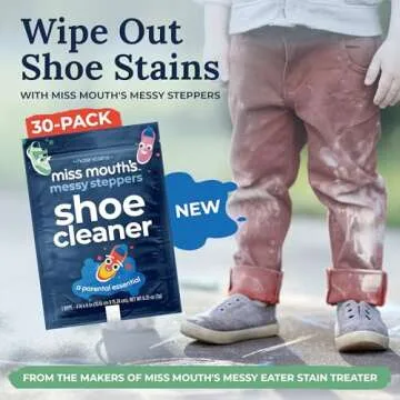 Show more Our Hate Stains Shoe Wipes are the ultimate solution for keeping your footwear looking pristine! These pre-moistened wipes are crafted from high-quality, non-woven sheets, specifically designed to tackle the toughest stains, scuffs, and dirt that can ruin your favorite shoes. From the trusted makers of Miss Mouth's Messy Eater Stain Treater, this product ensures your shoes stay fresh and stylish every step of the way. Stomp, spray, shine – it’s as easy as that!