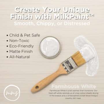 Miss Mustard Seed's MilkPaint for Furniture, Wood, Cabinets, Walls, Brick, and Stone, Water Based, All Natural, Eco Friendly, Organic, No VOCs (Farmhouse White, Pint)