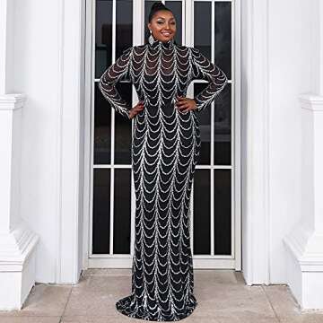 Crafted for comfort and style, this dress boasts a high neck and long sleeves that exude sophistication. The high waist and floor-length mermaid hem create a flattering silhouette that is both chic and sophisticated. With a slight stretch, it not only fits like a glove but also ensures ease of movement throughout your special events. Whether you're attending a wedding, a formal prom, or a gala, this dress will have you turning heads with its stunning design and vibrant presence.<\/p>