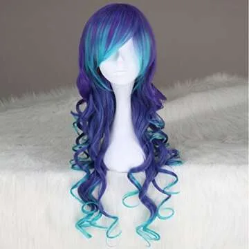 Show moreStep into a world of vibrant fantasy with the Miss U Hair Mermaid Costume Wig! This long, curly wig features a breathtaking gradient ombre of blue and purple, designed to unleash your inner mermaid or magical character. Made from 100% High Temperature Fiber, it mimics the feel of natural hair, allowing you to style it just like you would with your own locks. With a generous length of 29.5 inches and weighing only 0.64 lbs, this wig offers comfort without sacrificing style. Impressively bright and eye-catching, it’s perfect for parties, cosplay, and special events.