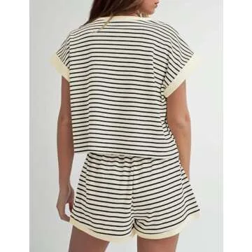 MISSACTIVER 2 Piece Lounge Set Women Stripe Knit Short Sleeve Tee Shirts Shorts Casual Summer Loungewear Shorts Sets