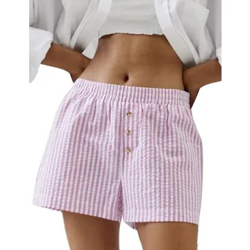 Show moreIntroducing the MISSACTIVER Women Elastic Striped Boxer Shorts, your new go-to summer lounge wear! These fashionable low-rise striped shorts are crafted from a breathable cotton blend, ensuring a lightweight and comfortable experience whether you're lounging at home or out and about. With stylish side pockets and a chic button detail front, these shorts add a touch of sophistication to casual wear. Designed for a trendy Y2K look, they offer a perfect fit that flatters any body type, making it an essential addition to your wardrobe.