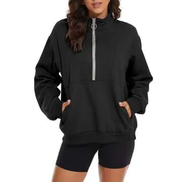 MISSACTIVER Women’s Oversized Half Zip Sweatshirt Quarter 1/4 Zipper Long Sleeve Drop Shoulder Pocket Pullover Jacket Tops(Small,Black)