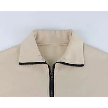 MISSACTIVER Women's Oversized Quarter 1/4 Zip Sweatshirts Lapel Collar Long sleeve Drop Shoulder Solid Pullover Jumper Top Apricot