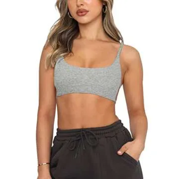 Show more Elevate your fitness and fashion game with the MISSACTIVER Women’s Sexy Backless Spaghetti Strap Crop Cami Top. Crafted from a premium ribbed knit fabric, this stylish crop top is designed to offer both comfort and style, making it the perfect choice for yoga classes, workouts, or even a night out. The light grey hue adds versatility, allowing you to easily pair it with various outfits. With its sexy backless design and adjustable spaghetti straps, this cami top not only provides adequate support for your workouts but also showcases your silhouette beautifully.