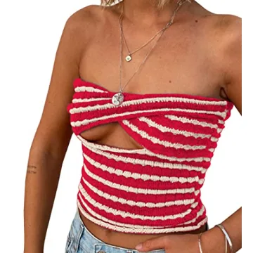 Show more Introducing the MISSACTIVER Women’s Striped Crisscross Knitted Crop Tube Top, an exquisite blend of contemporary style and ultimate comfort designed to make you stand out in any crowd. Crafted from a unique, high-quality knitted fabric that boasts just the right amount of stretch, this crop top hugs your body in all the right places while allowing for unrestricted movement. The sexy striped sleeveless design showcases your curves beautifully, while the eye-catching hollow-out back detail elevates your silhouette, making this piece a must-have for your wardrobe.