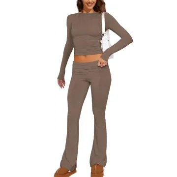 Show more Introducing the MISSACTIVER Women's Two Piece Outfit, your new go-to for ultimate comfort and style! This set features a modern design that combines a chic long sleeve crop top and low-rise flare pants, tailored specifically for movement and versatility. Crafted from a high-quality blend of 92% Rayon and 8% Spandex, this outfit promises a light, breathable feel that allows you to embrace activities with ease, whether you're running errands or practicing yoga. Available in stylish coffee color, the set is perfect for tall girls, offering a fashionable silhouette without compromising on comfort.