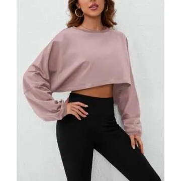 MISSACTIVER Women’s Vintage Oversized Long Sleeve Crop T-Shirt Loose Fit Drop Shoulder Crew Neck Cropped Tee Tops Pullover Dark Pink