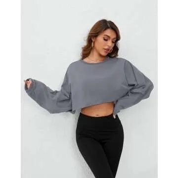 MISSACTIVER Women’s Vintage Oversized Long Sleeve Crop T-Shirt Loose Fit Drop Shoulder Crew Neck Cropped Tee Tops Pullover Grey