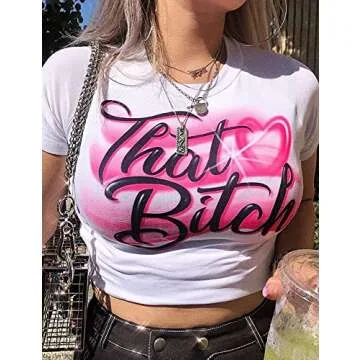 MISSACTIVER Women’s Y2K Dump Him Letter Print Crop T-Shirt Streetwear O-Neck Short Sleeve Crop Tops 2000s Aesthetics (Small, White&Pink)