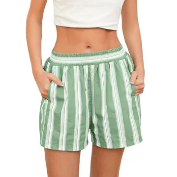 Show moreIntroducing the MISSACTIVER Women Striped Boxer Shorts, the ultimate fusion of style and comfort for the modern woman. Made from a premium cotton blend fabric, these high waist striped boxer shorts are designed to provide a breezy and breathable wear experience that’s perfect for those warm summer days. With their vintage aesthetic and Y2K vibes, they offer a playful yet chic addition to your casual wardrobe. Featuring a wide elastic smocked waistband and wide legs, these shorts perfectly combine functionality with a loose fit that flatters various body shapes.
