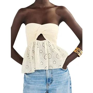 MISSACTIVER Women Twist Knot Knit Bandeau Tube Top Embroidery Strapless Off Shoulder Backless Hollow Crop Tank Corset Top
