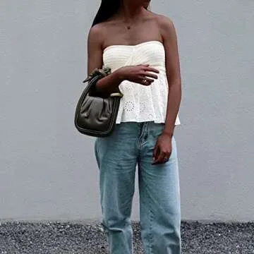 Designed for versatility, the top boasts embroidery patchwork and a stylish backless feature, allowing you to easily pair it with various outfits. Whether you're heading to the beach with friends, dressing up for a date, or enjoying a night out on the town, this knitted strapless off-shoulder cami is sure to turn heads. The crisscross front and ruched details also add a touch of charm, elegantly highlighting your curves.