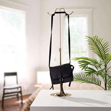 Missartist 2 Pack Double Hook Handbag Display Stand Double Hook Metal Handbag Display Rack Stand (Gold)