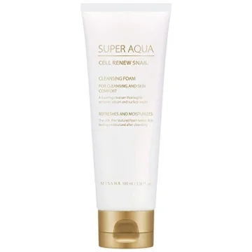Show moreIntroducing the Missha Super Aqua Cell Renew Snail Cleansing Foam, a revolutionary skincare product that combines the healing power of snail slime extract and potent botanical stem cell extracts to transform your skincare routine! With **30% snail slime extract**, this foaming cleanser deeply penetrates your skin, working diligently to prevent, recover, and rejuvenate damaged skin. As it removes excess sebum and dead skin cells, you'll notice the brightening effects on acne scars, reduced redness, and a more even skin tone. Designed to refresh and hydrate, this rich-textured foam leaves your skin feeling invigorated and clear, perfect for daily use and all skin types.
