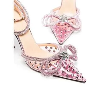 Show more Step into elegance and make a statement with the MissHeel Pink Rhinestone Bow Heels. These exquisite ankle strap pumps are designed for the modern woman who values both style and comfort. With a chic 3.3-inch heel and a stunning crystal-embellished double bow, these shoes perfectly blend sophistication with contemporary flair. Crafted for versatile wear, whether at a wedding, party, or romantic date night, these heels are your essential wardrobe staple. The pointed-toe design not only enhances your silhouette but also provides a flattering finish, ensuring you look fabulous from every angle. The ankle wrap detail adds an edge to your look while providing ample support for all-day wear.