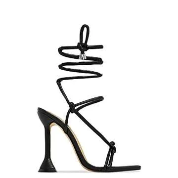 MissHeel Tie Up Heels Black Sexy Strappy Sandals Heels Square Toe Lace up Heels Chunky Sandles for Women Dressy Heels Gladiator High Heels Party Dancing Size 7