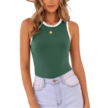 MISSJOY Women's Basic Sleeveless Racer Back Halter Neck Ribbed Bodysuit Tank Tops