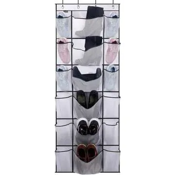 MISSLO Over the Door Shoe Organizer with 6 Extra Large Mesh Storage Pockets Hanging Shoe Holder Hanger, White