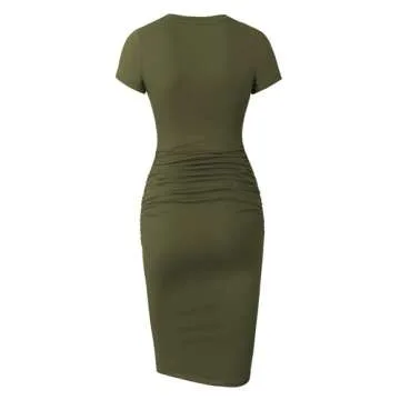 Show moreDiscover the essential wardrobe piece you've been searching for with the Missufe Women's Short Sleeve Ruched Casual Sundress Midi Bodycon T Shirt Dress. Designed for the modern woman, this chic dress combines unparalleled comfort with a stylish silhouette that flatters all body types. Crafted from high-quality, breathable fabric, the unique ruching design not only enhances your natural curves but also provides a seamless and elegant look for any occasion. Whether it's brunch with friends or an evening out, this dress effortlessly transitions from day to night, making it an indispensable addition to your fashion repertoire.