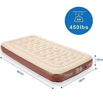 Show moreIntroducing the missyee Inflatable Twin Air Mattress – your ideal solution for a restful night’s sleep, whether you’re camping in the great outdoors or providing comfortable accommodations for guests at home. This air mattress boasts innovative patent technology that prevents bulging and deformation, ensuring superior comfort and support. The unique coil beam construction evenly distributes your body weight, protecting your spine and enhancing your health while you sleep. With a height of just 9 inches, it's perfect for those seeking a compact yet cushioned sleeping option.