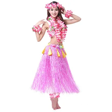 The set comprises not only the hula skirt but also an eye-catching necklace, a stylish headband, two vibrant bracelets, and two beautiful foot rings, providing you with everything you need to make a statement. Perfect for Hawaiian-themed parties, fancy dress gatherings, dance shows, or even for enlivening your Halloween costume, this outfit is your ultimate go-to for tropical fun!