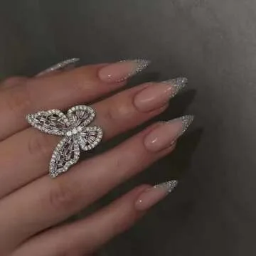 These press on nails feature a stunning design accentuated with sparkling glitter and chic French tips, keeping you in line with the latest trends. Whether you want to make a statement at a party or simply elevate your everyday look, these nails offer versatility and style that will undoubtedly turn heads.
